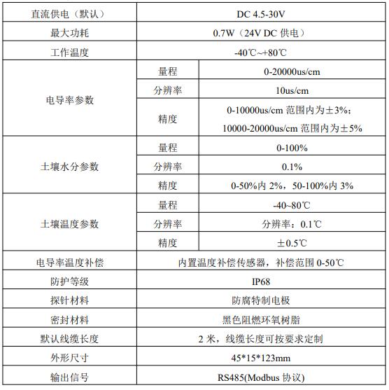 1)土壤含水率、電導率以及溫度三參數合一。