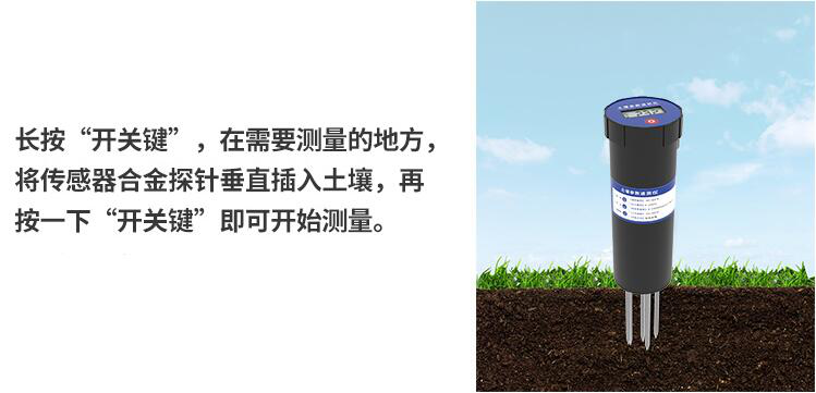 4、使用時(shí)注意測(cè)試點(diǎn)不要碰到石頭,不要用力過(guò)猛,否則會(huì)容易傷害電極。不宜長(zhǎng)時(shí)間插 在土壤中,容易氧化。