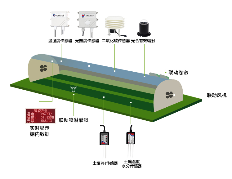 溫室大棚環(huán)境監(jiān)測系統(tǒng)各項傳感器的功能: