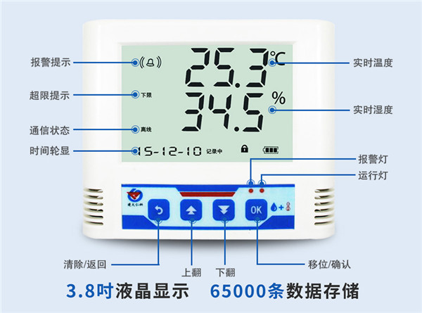 同時(shí)WIFI多探頭型溫濕度記錄儀上有四路溫濕度探頭可分別設(shè)置不同的溫濕度的上下限,并同時(shí)設(shè)有內(nèi)置蜂鳴器,當(dāng)實(shí)驗(yàn)室溫濕度低于或超過(guò)所設(shè)閾值后報(bào)警燈亮起,蜂鳴器報(bào)警,提醒實(shí)驗(yàn)室環(huán)境管理人員及時(shí)對(duì)室內(nèi)環(huán)境進(jìn)行調(diào)整。