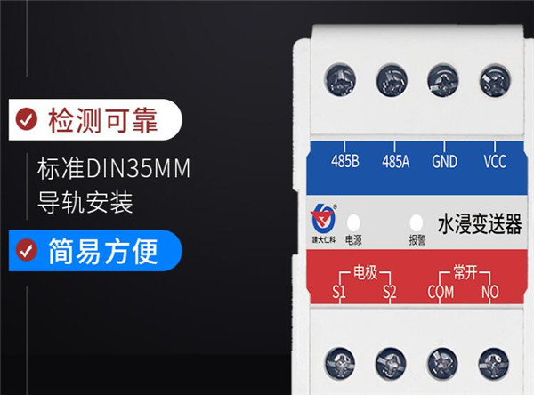 建大仁科卡軌殼水浸傳感器(RS-SJ-N01R01-4)采用獨有的交流采樣技術(shù),準確區(qū)分是否發(fā)生水浸,因為采用交變電流檢測,電極即使長時間浸泡也不會產(chǎn)生電泳極化,不依賴特殊電極,做到壽命長、檢測可靠。采用 485 通信接口標準 Mobus-RTU通信協(xié)議,可接入現(xiàn)場組態(tài)系統(tǒng)或 PLC;帶有1路繼電器常開點輸出,方便接入現(xiàn)場設(shè)備,標準 DIN35mm導(dǎo)軌安裝,安裝方便。
