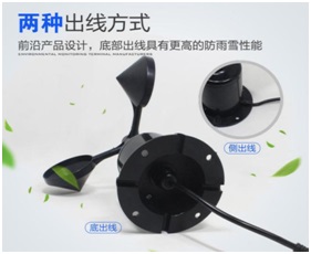 ?。?)風(fēng)速風(fēng)向傳感器采用前沿產(chǎn)品設(shè)計(jì),有底出線和側(cè)出線兩種出線方式,底部出線有更高的防雨雪性能。
