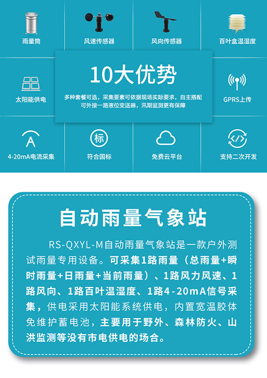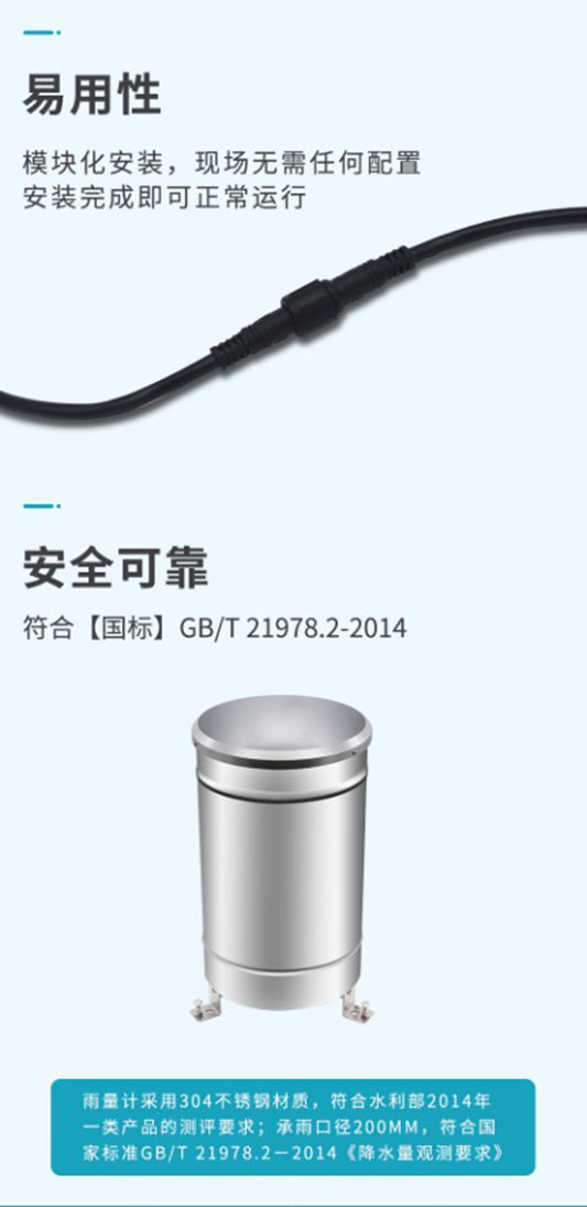 默認(rèn)脈沖當(dāng)量:0.5mm 可上傳瞬時雨量、日雨量、當(dāng)前雨量及累計雨量值。 |